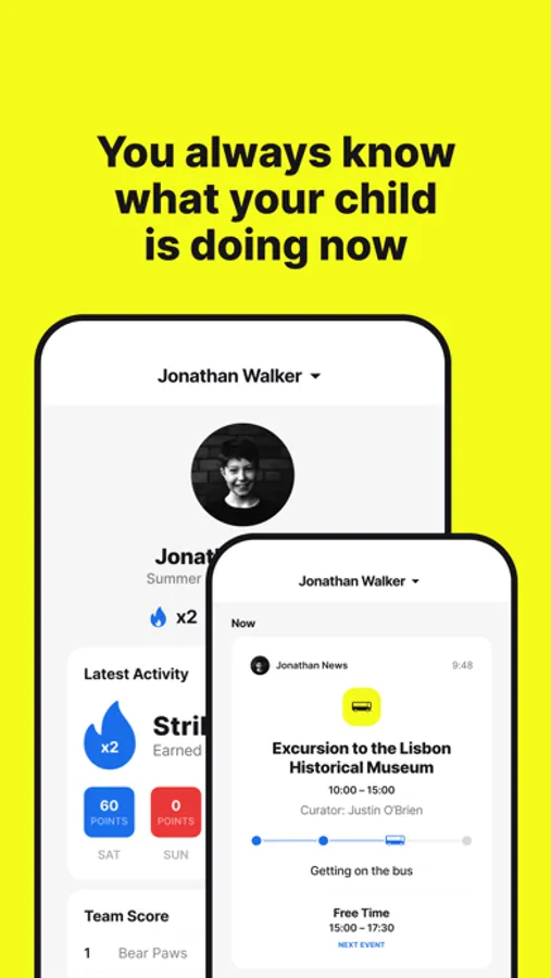 • Push notifications to stay informed about daily activities