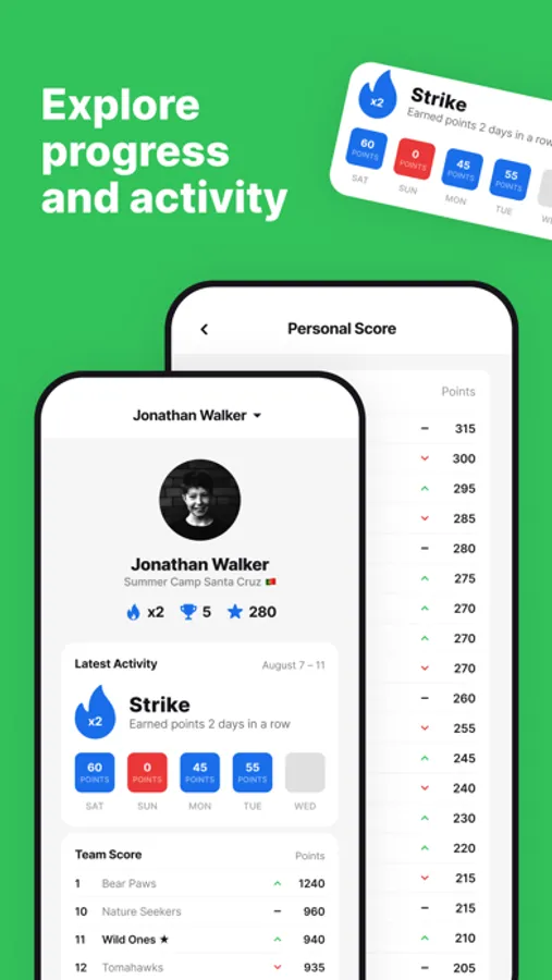 • Optional: updates on scores and achievements as a result of participation on camp activities and competitions.