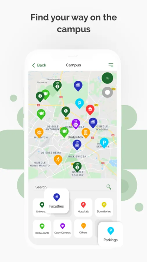 In particular, the application is meant to ease getting around the university campus and Bialystok for new students. The content of the app includes also essential information about University, admission and many tips for foreign students. The app is a comprehensive guide for new students or foreign guests, including contact details of Dean’s Offices and MUB units, Welcome Centre, information on dormitories, student organisations as well as about city transport, legalisation of stay, security and healthcare in Poland.