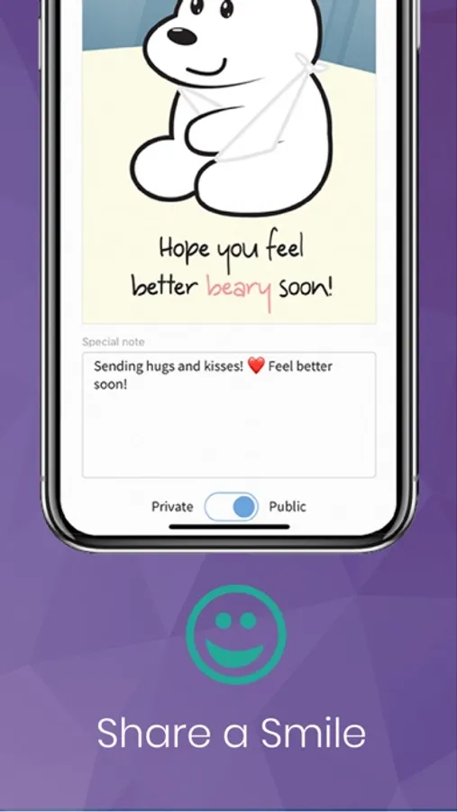 A special in app feature that includes the ability to send cards and get well wishes directly to the patient to let them know that support is close by.
