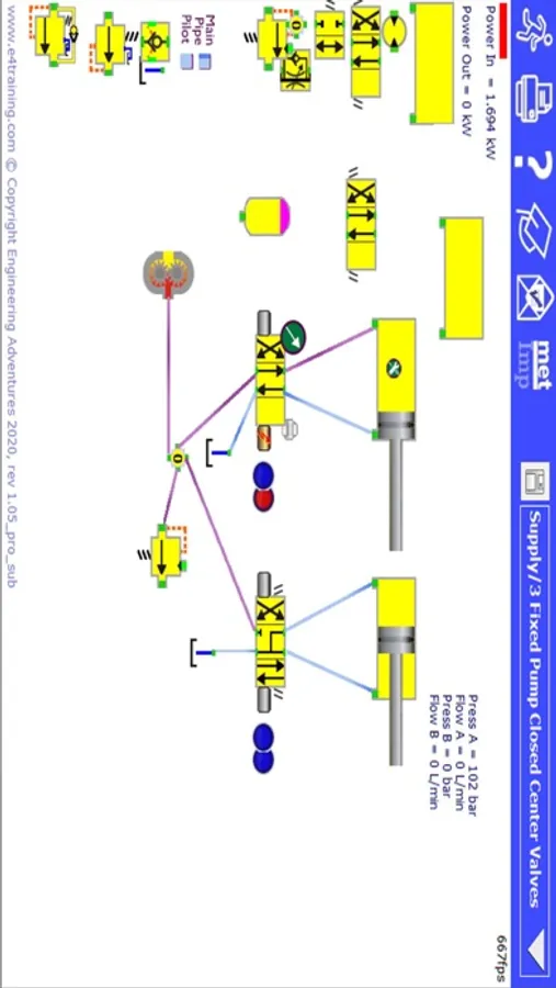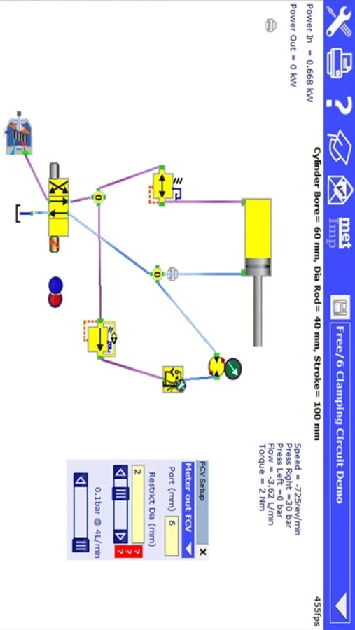 This simulation program lets you build and test hydraulic circuits to help you understand how they will perform. Its purpose is for training, rather than dynamic system design. Learn about a wide range of different systems by simply loading the circuits and operating the control valves. Training exercises are provided to help users learn about the different hydraulic components and design techniques. The program includes a number of example circuits where users can change the component sizes or settings to replicate their own equipment. Test gauges can be used to examine the performance at different parts of the circuit or readings can be taken and exported to a spreadsheet for analysis. Users can also build their own custom circuits with a simple drag and drop editor.