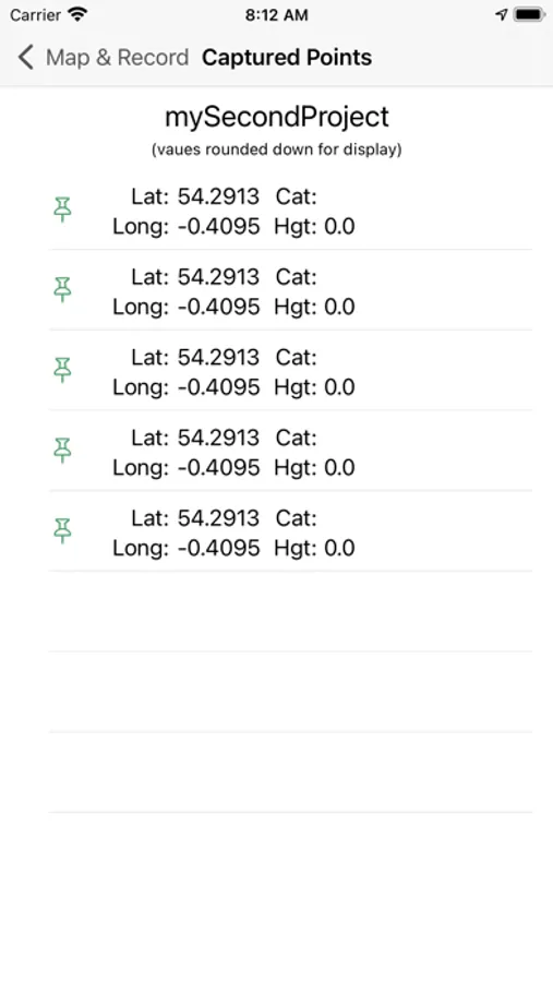 The project keeps track of all the recorded points and records the Latitude, Longitude, Altitude, and Heading plus the links to any photographs. The project can be saved direct to the iCloud drive or to the photo library. The data is also saved direct to the iCloud drive or sent via email using the universal CSV standard, for easy import into many GIS type systems or similar.