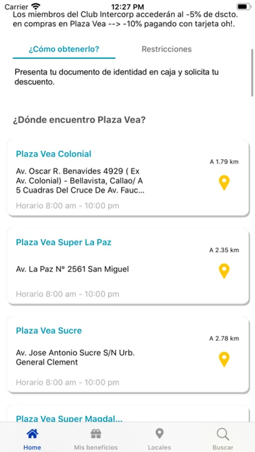 - Ubicar rápidamente los locales de tus beneficios y ver los que están más cerca a ti