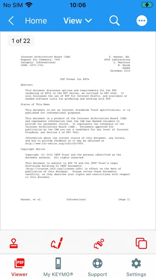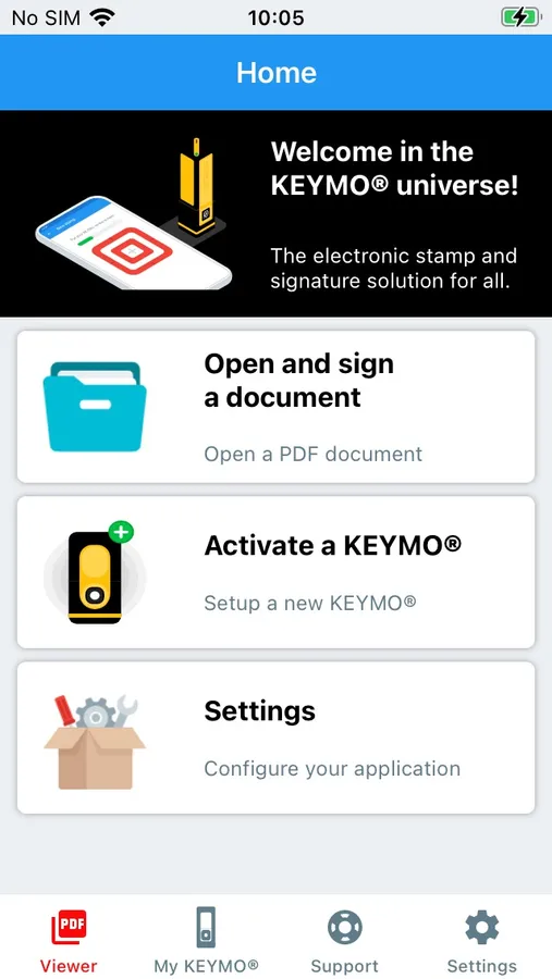 Affix as much as you want electronic seals and signatures thanks to the application and its KEYMO® stamp, on the fly on your mobile or someone else’s one without internet connection.