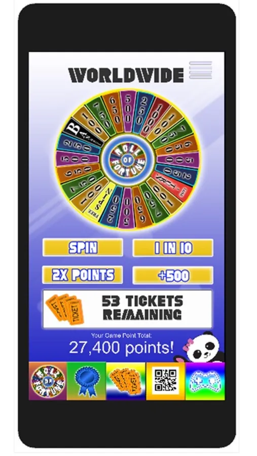 You have a limited number of tickets for each month's game. Every day you play your tickets in a way that you think will give you the advantage over all of the other players. You can spin the wheel, go for a long-shot 1 IN 10 (you would gain 10 times your current points), try to double your points with the 2X POINTS, or go for the safe route and bank 500 points. Be careful! You could go bankrupt and lose all of your points.