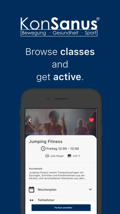 Create your own workouts and watch professional exercise videos and classes from the experts of KonSanus. Track your training progress at all times.