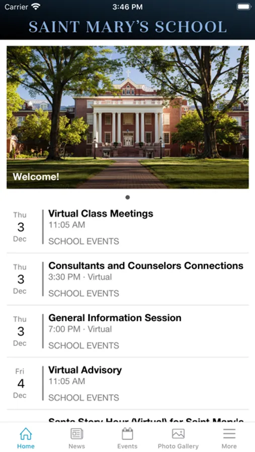 The Saint Mary’s School app provides parents, students, and faculty members with all the information they need in one place, conveniently accessed and formatted specifically for consumption on their mobile devices.