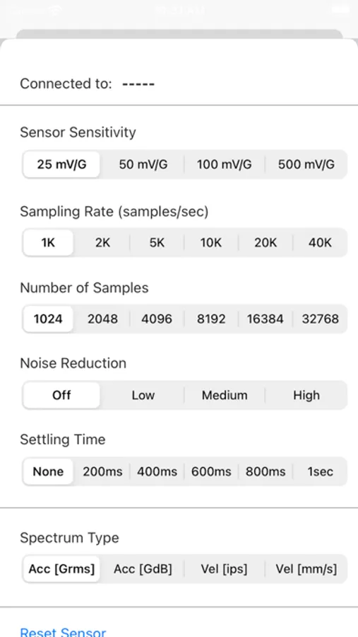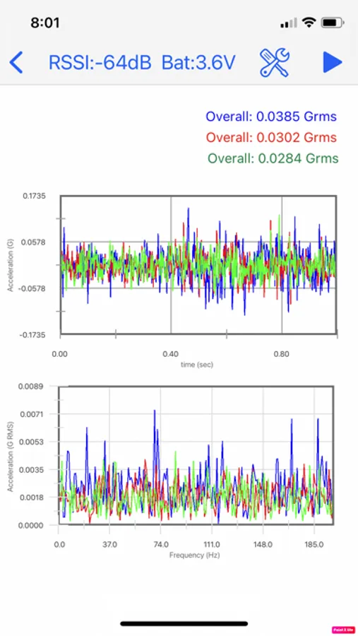 The app is designed to test drive different Machine Condition Monitoring sensors, connect to them and plot the Time Waveform graph and the Vibration Spectrum in Acceleration, dB and Velocity. The app will auto-calibrate to each sensor and provides data acquisition with different sampling rates and number of samples.