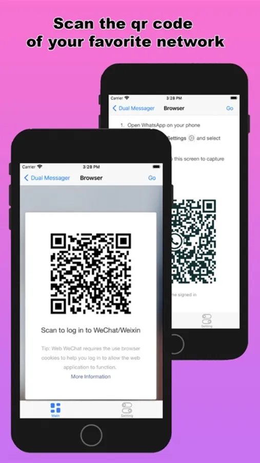 You just have to open the app and scan the QR code of the other account and now you are done to use the dual chat feature with this web clone app.