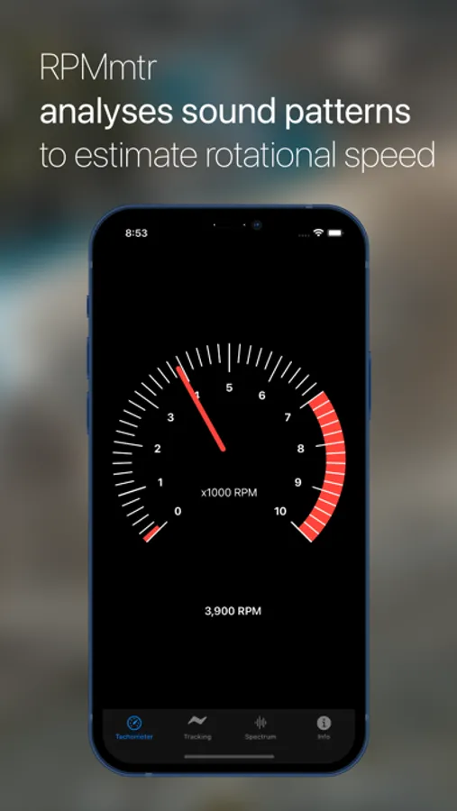 Engines, motors and rotating machinery generate periodic sound patterns. RPMmtr analyses those sound patterns to measure RPM (rotational speed) based on state-of-the-art signal processing technology.