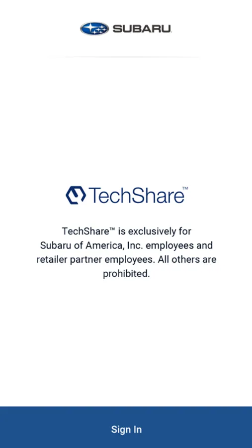 TechShare™ is exclusively for Subaru of America, Inc. employees and retailer partner employees. Features including giving feedback, taking photos, and reading the latest news.