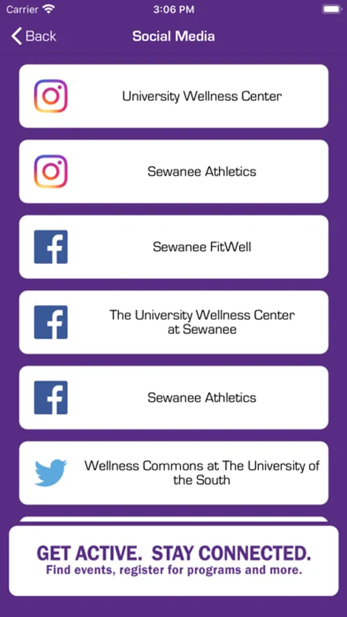 Sewanee Fitwell promotes and facilitates exercise and physical activity for the University of the South, supporting the flourishing domain of mental and physical health. FitWell strives to promote relationships and connections in our community with movement and exercise, in hopes of developing a lifelong appreciation of wellness and movement. This app includes information and programming provided by Sewanee FitWell, the University Wellness Center, and the Fowler Center. Register for fitness classes, special events, wellness seminars and classes, workout sessions and more.