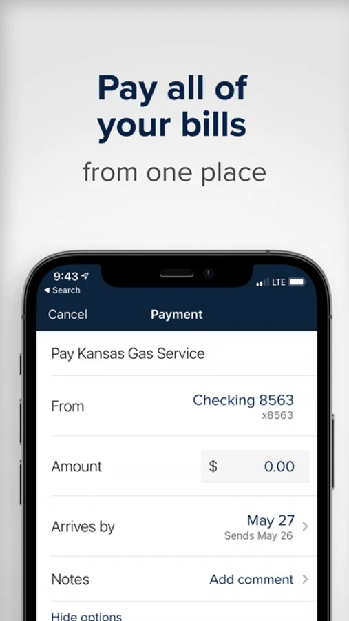 Pay bills – Schedule one-time or recurring payments to any business in the U.S. Manage your payees by adding new or editing existing entries.
