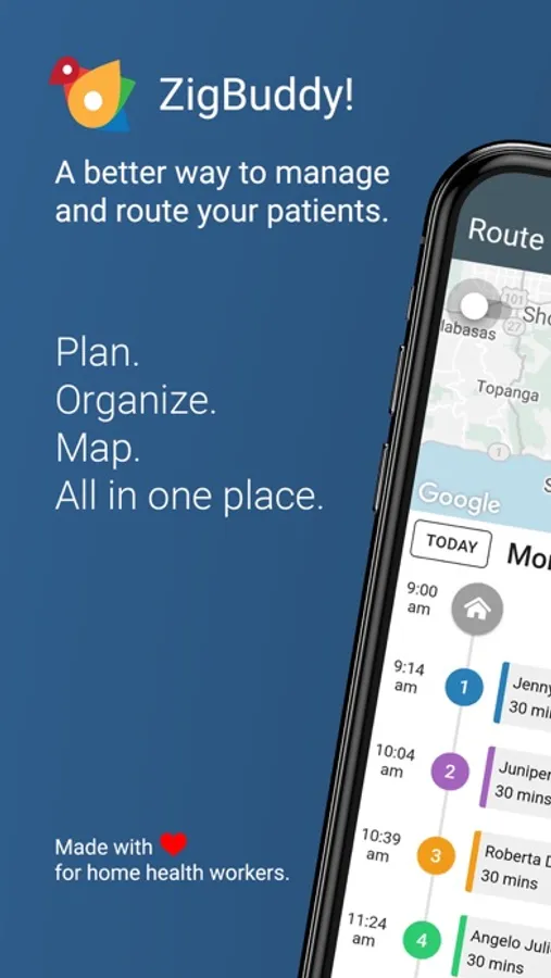 ZigBuddy lets home health workers manage and route patients faster than ever before. Plan, organize, map, route, take notes, and more...all in one place.