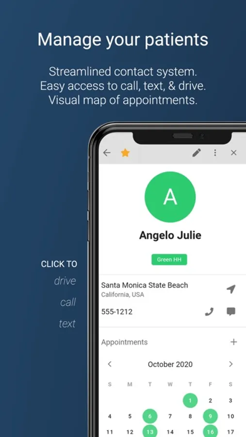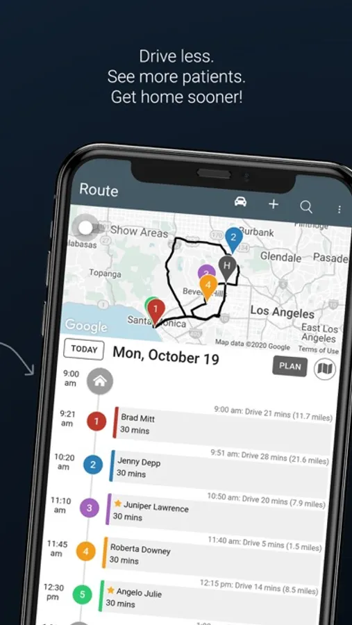 • Intelligent map and routing - No more not having a visual where your patients live. We do this for you. We'll even optimize your route. Automatically!