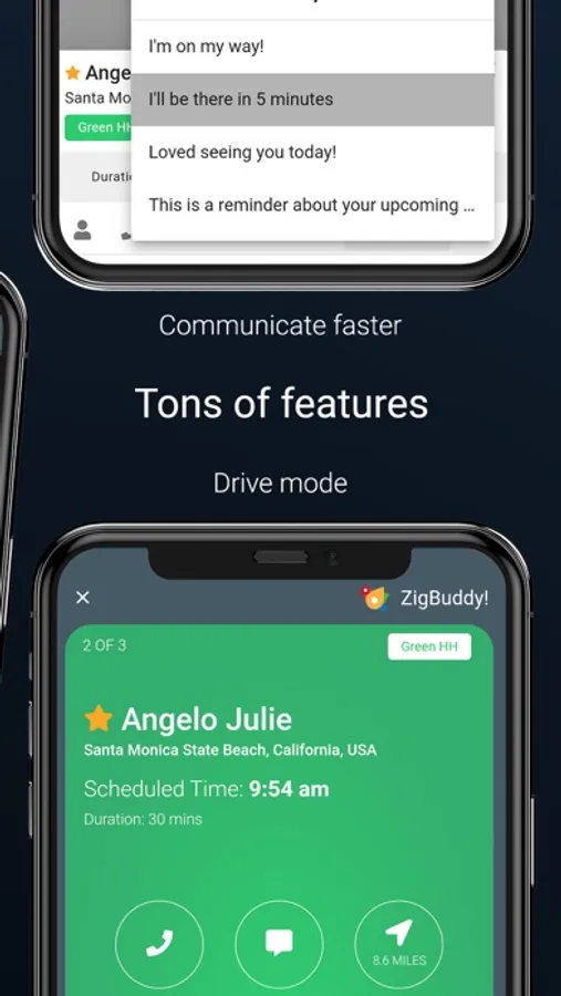• ZigBuddy calculates estimated time when you will arrive at each patient's home so you can give them a more accurate time estimate