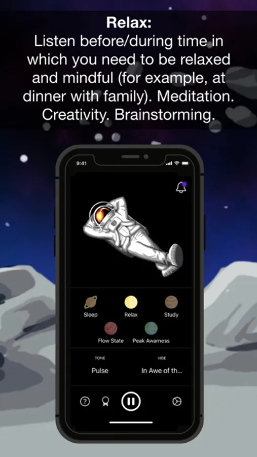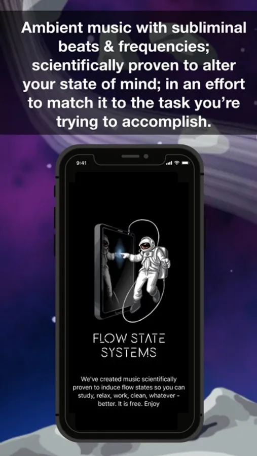 We use music with subliminal tones baked into our songs; scientifically proven to alter your state of mind; in an effort to match it to the task you’re trying to accomplish. This will allow you to be in control of when you enter flow states, relaxation periods, or even prepare for sleep.