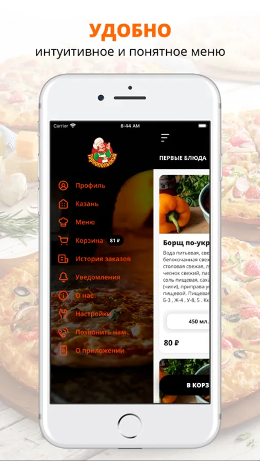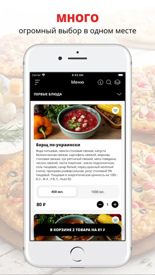 Скачивайте приложение и заказывайте готовую еду с доставкой на дом или в офис!