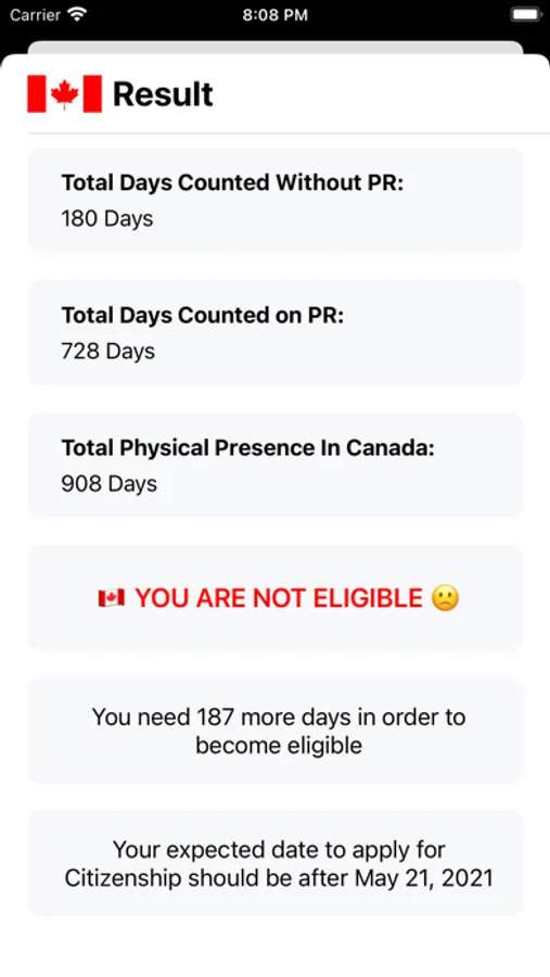 You are staying in Canada on PR and want to know if you are eligible or not to apply for Canadian Citizenship. You can use this handy calculator which will tell you if you are eligible or not eligible. If you are not eligible at this time, it will also tell you when you will become eligible for the citizenship. Isnt it great so that you can track this date and make yourself ready when you become eligible.