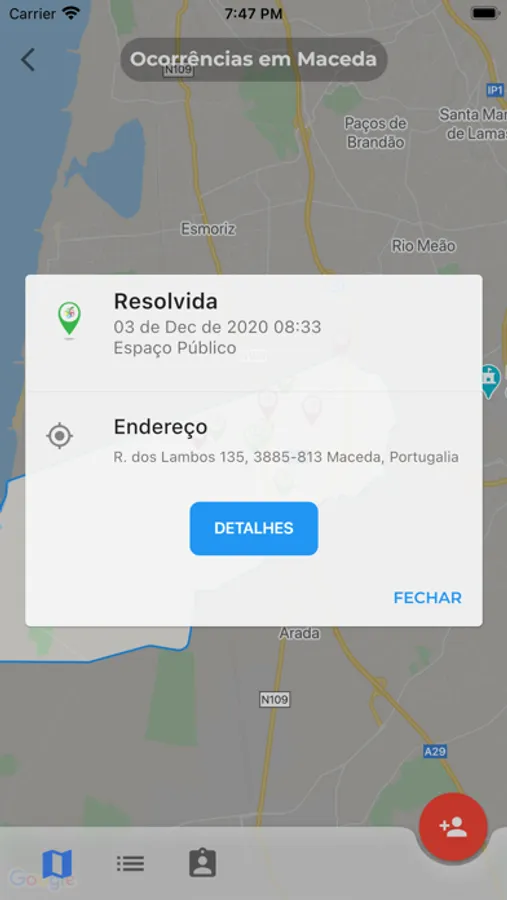- Consultar ocorrências reportadas pelos teus vizinhos;