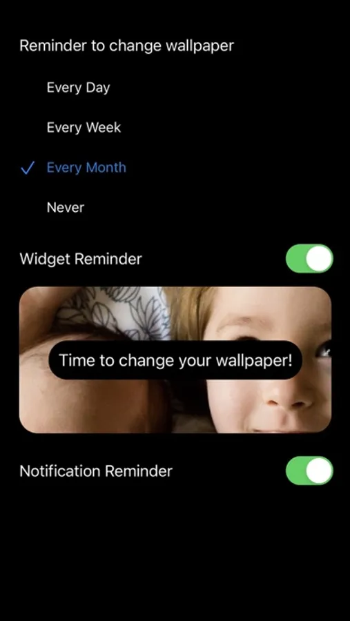 In addition to choosing a new great new wallpaper, users can have a custom photo widget on their home screen. The photo widget can be small, medium or large and can remind you to change your wallpaper every day, week or month, if you want!