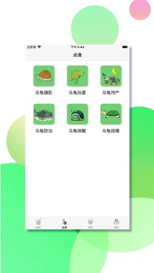 您还可为您的乌龟添加摄影、玩耍、待产、防治、排酸、投喂的信息,记录饲养中的点点滴滴!