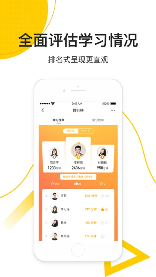 学习数据全程追踪,全面评估学员学习情况,排名式呈现更直观