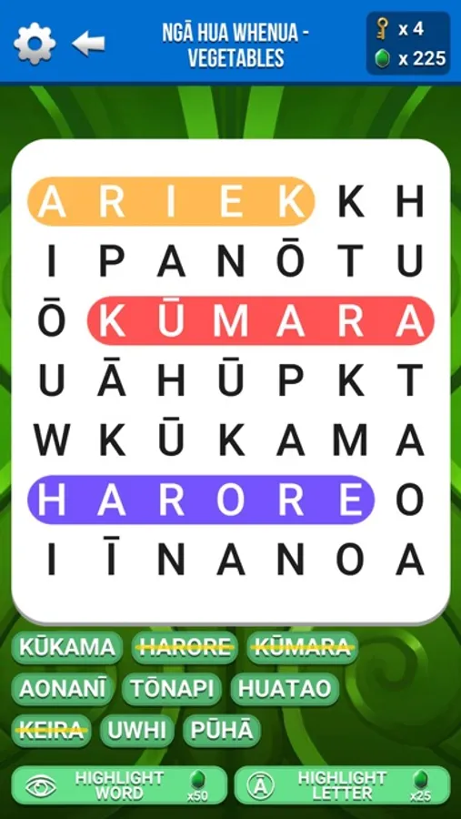 Based on the popular word find game, Kupu Puku is suitable for players learning Te Reo. In this game players can search for words that are shown to them, get English hints for the words at any time and listen to Te Reo audio for the puzzle words at any time.