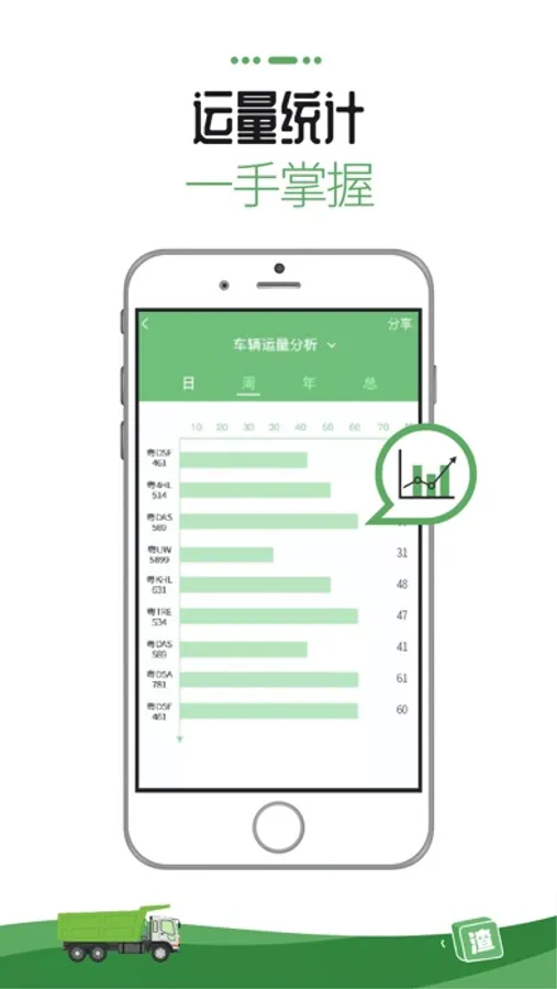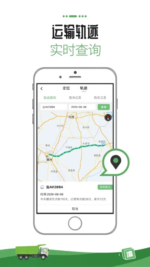 【实时统计】 对车辆行驶轨迹进行实时记录,通过电子围栏技术自动统计每天作业量,运输距离、趟数等,