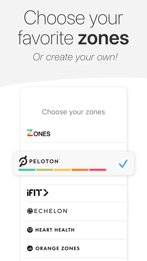 The Zones App has five branded zone models to choose from, inspired by some of your favorite fitness brands: