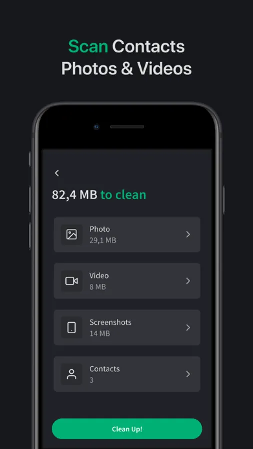 Easily remove empty and duplicate contacts, screenshots, similar photos, duplicate videos from your iPhone. Smart cleaner analyzing will safe your time by showing you all unwanted files and contacts. You can look through the list of contacts, screenshots, duplicate photos and videos before cleaning to additional select/unselect useful files.