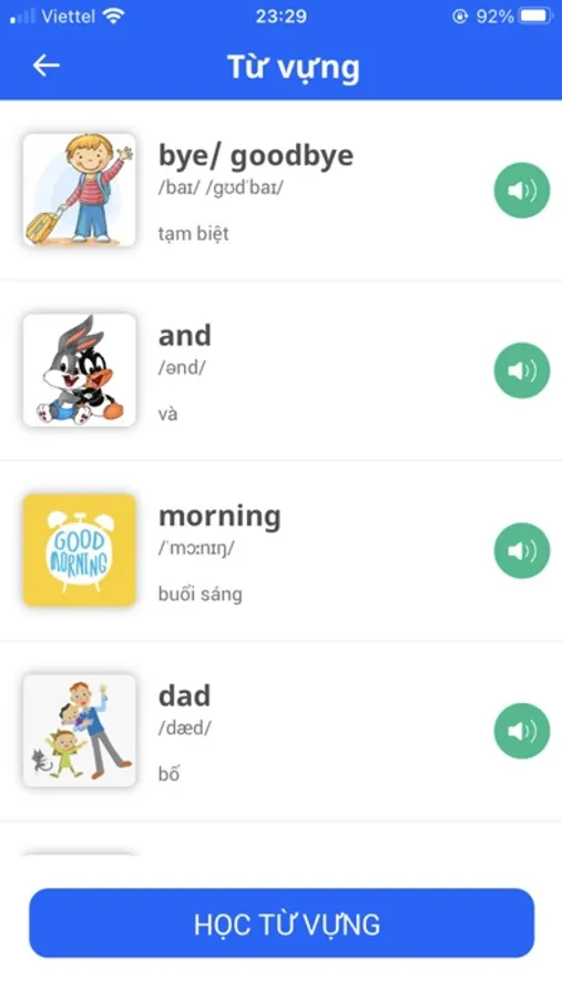 Tiếng Anh trẻ em: cho các bé từ 3 – 15 tuổi, các bé được học từ vựng, mẫu câu qua các hình ảnh, video, hoạt hình,… giúp các bé có hứng thú học tiếng anh hơn. Theo phương châm HỌC MÀ CHƠI, CHƠI MÀ HỌC