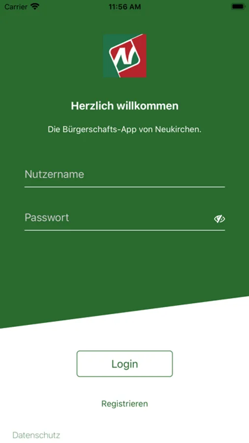 Bitte registrieren sie sich unter https://neukirchen.app, um sich in der App einloggen zu können.