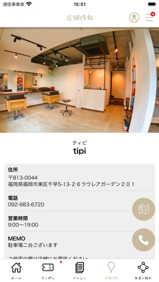 店舗のマップが表示され、地図アプリとも連携しているので、