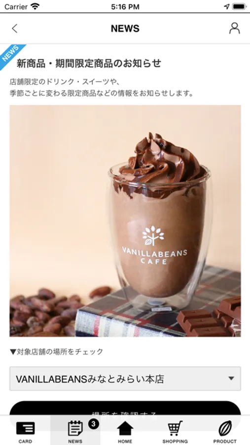 VANILLABEANS公式モバイルアプリは、対象店舗にて会員証としてご利用いただけるだけでなく、最新のお知らせや、オンラインショップでのお買いものが便利にご利用いただけるアプリです。