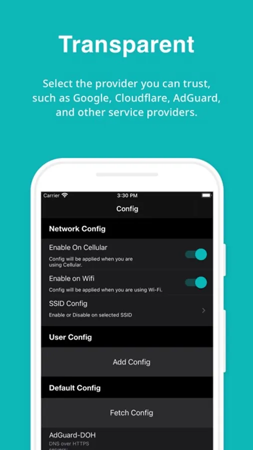Transparency: You can choose from various trusted service providers such as Google, Cloudflare, AdGuard, and more.
