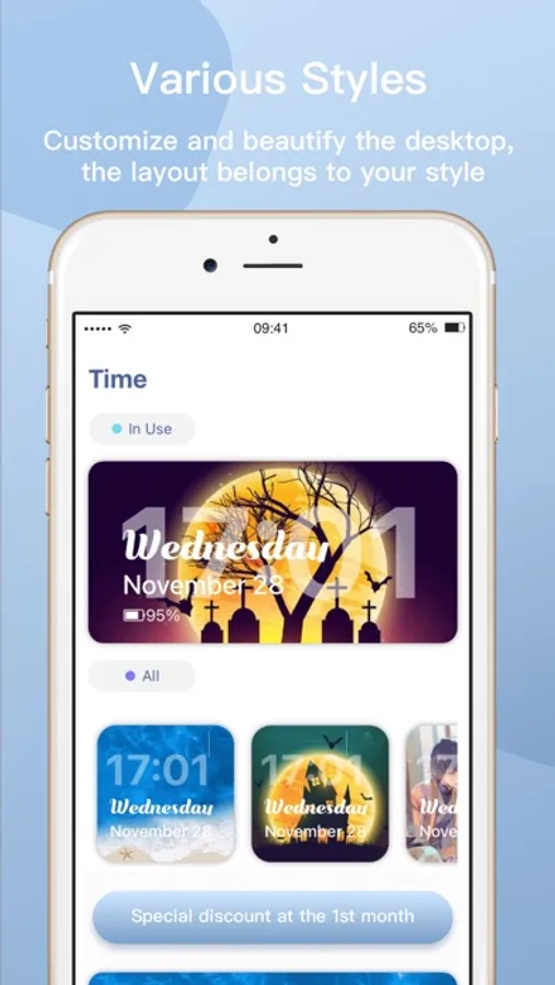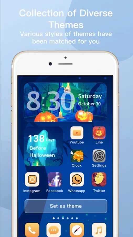 We provide you with themes in a variety of styles. Each theme includes matching wallpapers, widgets and app icons.