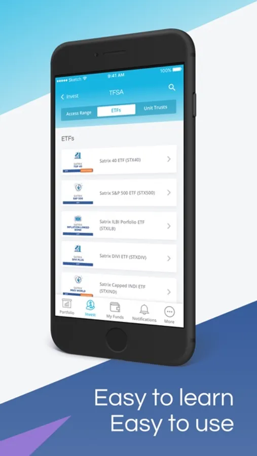 - Explore all the Satrix ETFs and Unit Trust in a single interface, across multiple account types