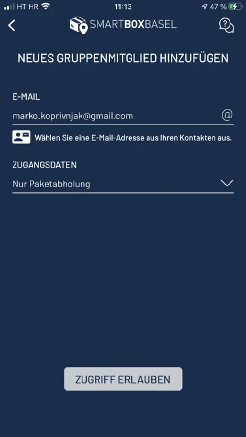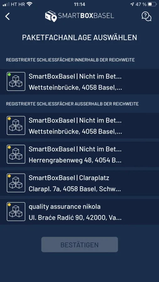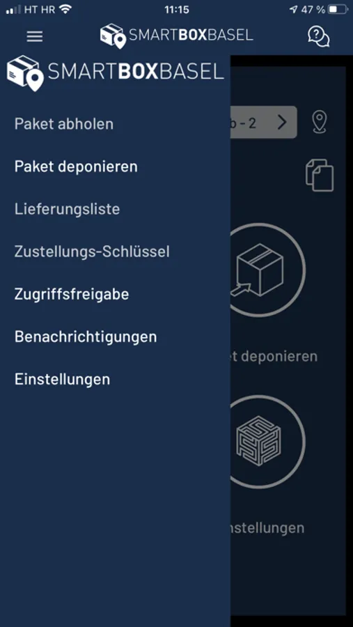 User app for using the SmartBoxBasel parcel locker system - the first courier independent smart box of its kind in public spaces