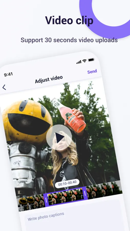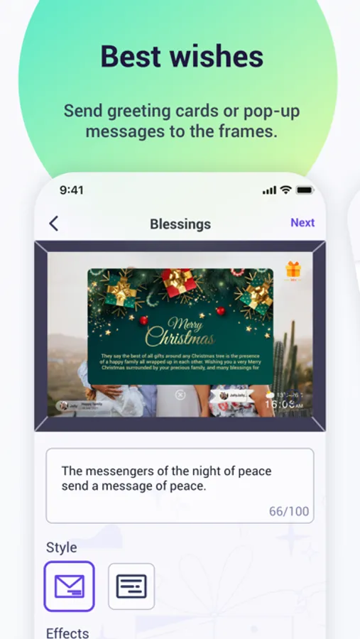 You can send photos directly from the frame, or you can take new photos with your camera.You can customize the title for your favorite photo or video during the sharing process.