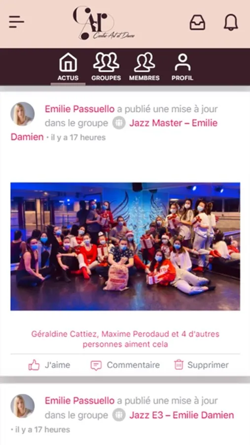 Professeurs, parents d'élèves et élèves de l'école de danse "Centre Art et Danse", située à Antibes, sont réunis dans cette application afin de suivre l'actualité de l'école, d'échanger et de s'informer sur les derniers cours.