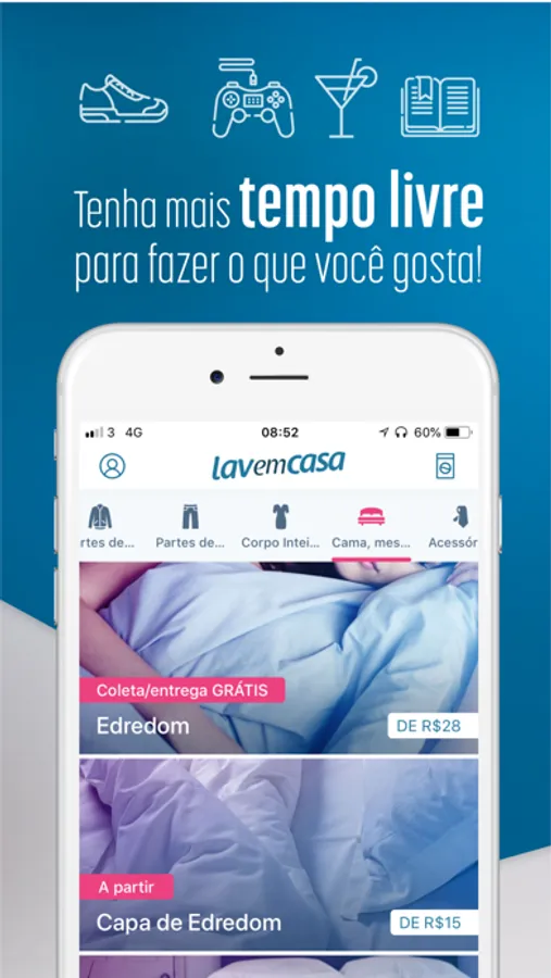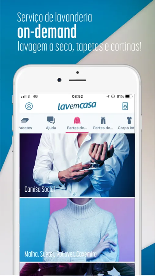 Sem perder mais tempo lavando e passando roupas, você só precisa baixar o aplicativo, agendar a data e o horário da coleta e entrega e a Lavemcasa busca, lava, passa e entrega.