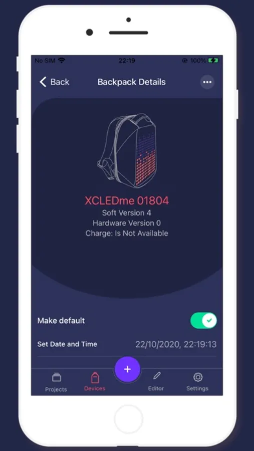 Uploading images to your LEDme backpack via Bluetooth, which allows Wi-Fi and mobile data to work without any interactions
