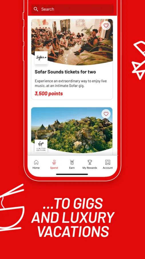 There are also opportunities to earn through exclusive offers just for you. Here comes the fun part: the spending. Virgin Red members can use their points for everything from a pair of gig tickets to exclusive stays in dreamy locations.