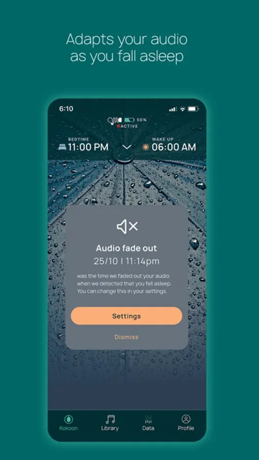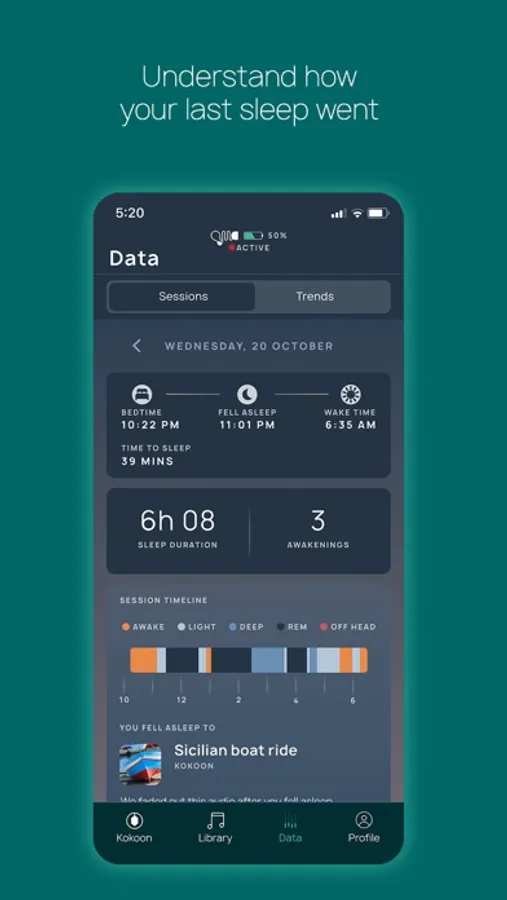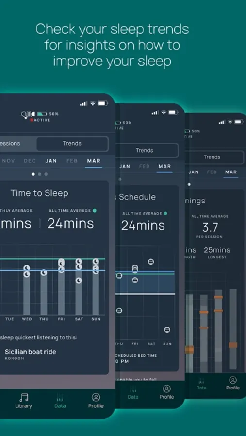 Data tracking and insights - build an understanding of your sleep, and see how your audio usage and behaviours affect your sleep over time.