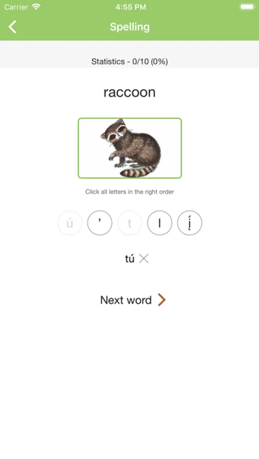 - Track your progress and review words you’ve learned by category or activity