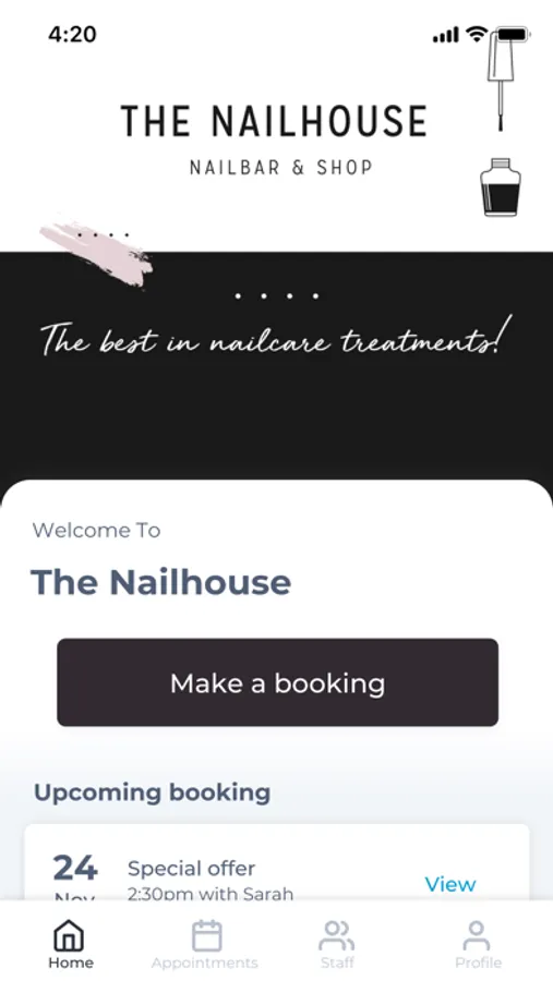 The The Nailhouse app makes booking your appointments and managing your loyalty points even easier. You're just a few taps away from feeling good and looking great!