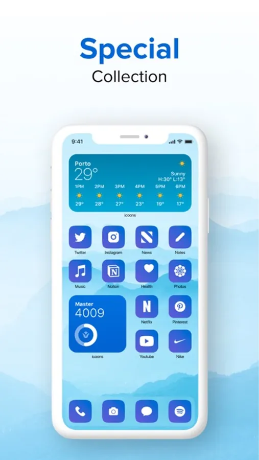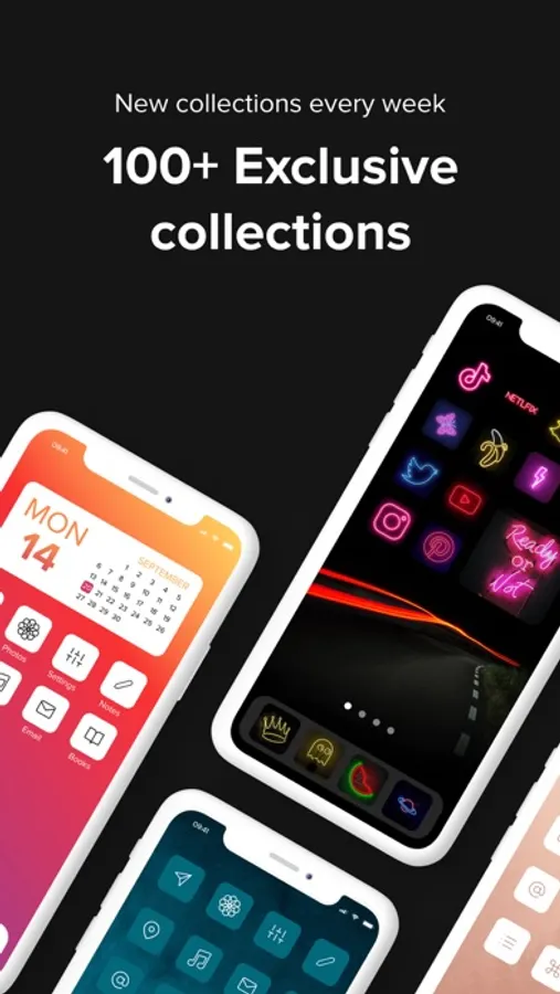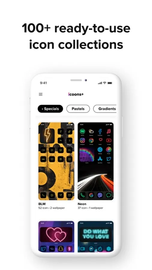 · Pre-made icon collections to choose including Minimalistic, Light, Dark, Pastel, etc.