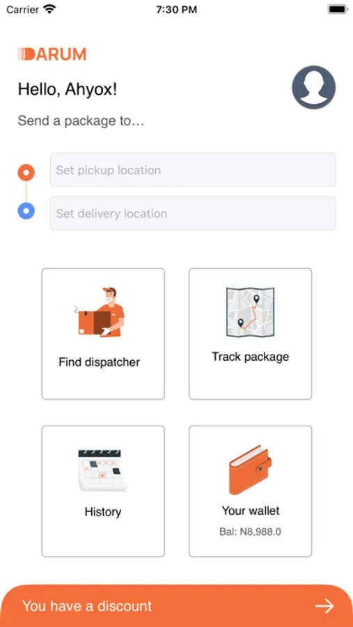 Darum is an on-demand dispatch hailing service available in Lagos, Nigeria. With our network of registered courier companies, sending a parcel is now at your fingertips, anytime and to anywhere across the city. All you have to do is open your app and select your pickup and delivery location, and a dispatch rider nearby will help you get it done.