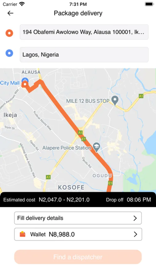 Food delivery is a very sensitive and delicate type of delivery service and we take it very seriously. This means only dispatch riders whose forte is food delivery would be located in your search once you select food as your delivery item.